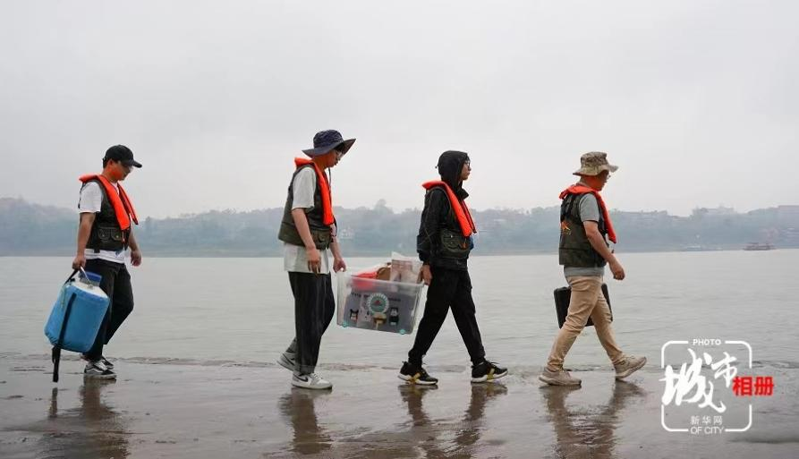 何滔带领研究生进行长江水生生物资源调查,右一为何滔(图源新华网,黄俊辉摄)