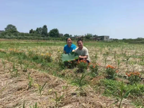 指导学生们进行田间实验右一为戴秀梅