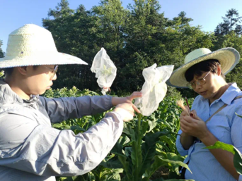在田间指导学生和烟农右二为戴秀梅